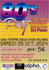 - 20 H: SOIREE MUSIQUE ANNEES 80 ANIME PAR DJ PACO.